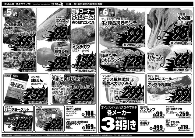 ★超目玉数量制限は一家庭単位の数量制限となっておりますのでご了承下さい。 ★チラシ表示価格は本体価格(税抜)と税込価格の併記となっております。 ★広告の写真はすべてイメージ図です。 ★広告の商品は十分に取り揃えておりますが、万一品切れの節はご容赦下さい。