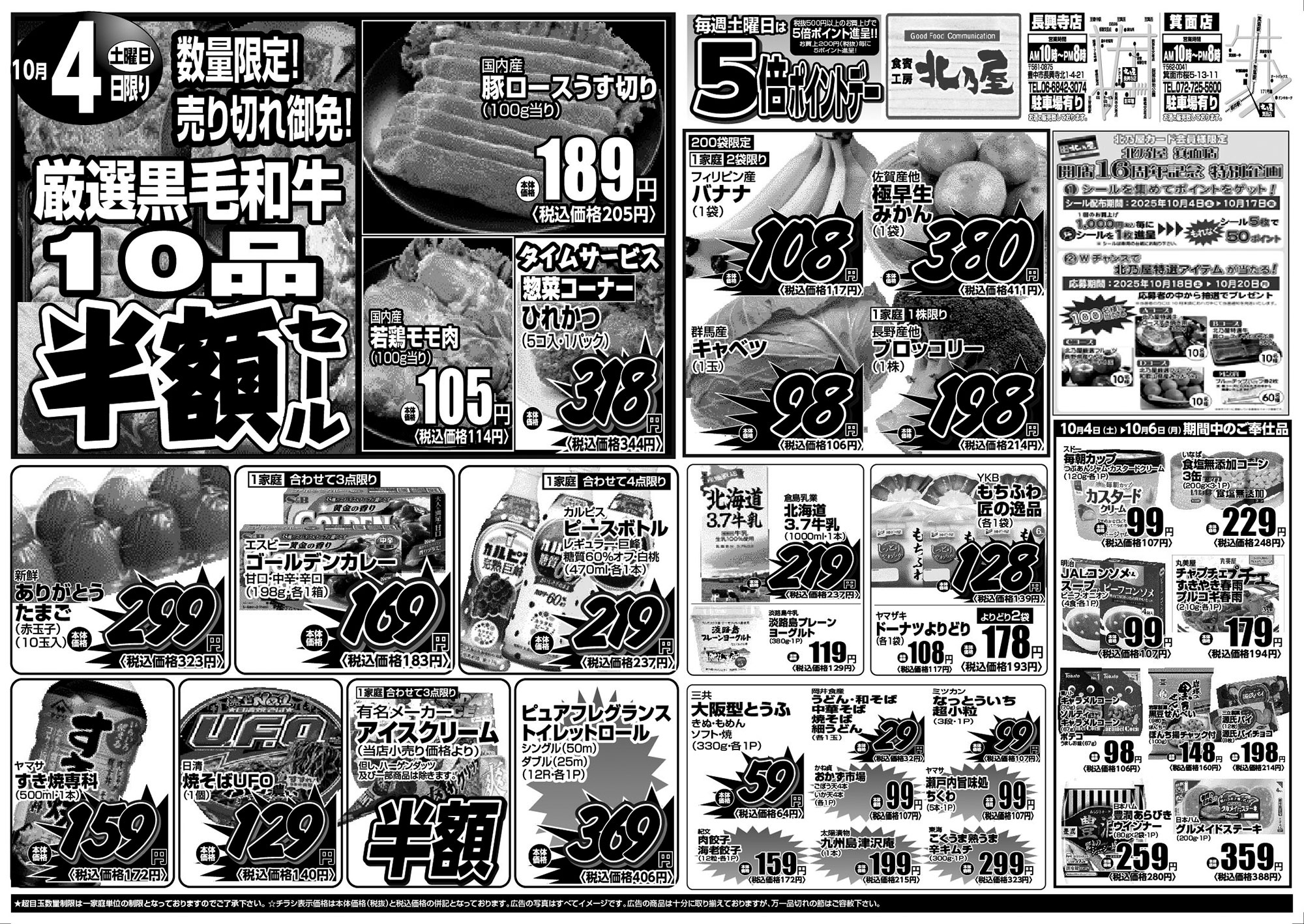 食賓工房北乃屋の最新WEBチラシ(2025年10月4日)