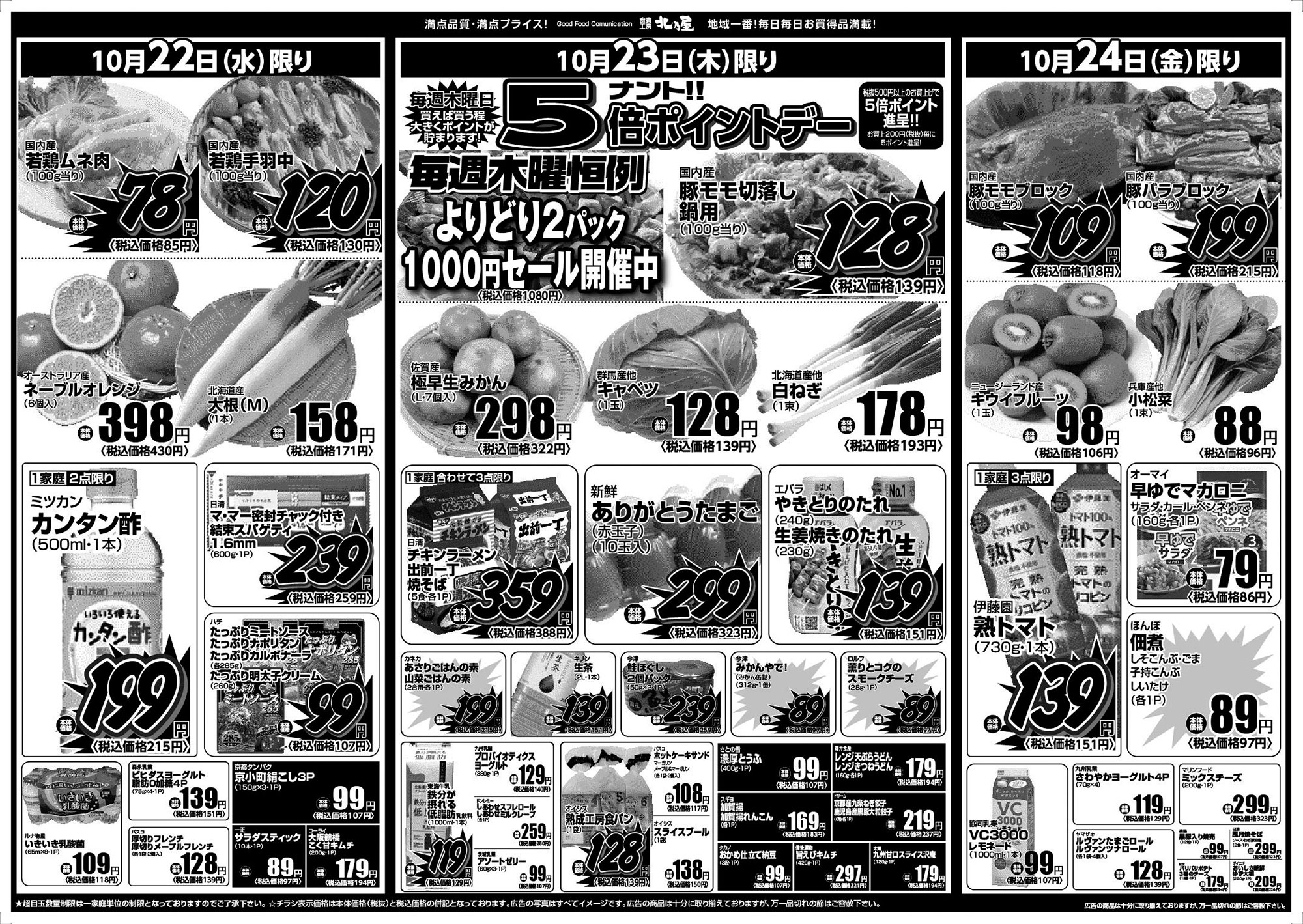 ★超目玉数量制限は一家庭単位の数量制限となっておりますのでご了承下さい。 ★チラシ表示価格は本体価格(税抜)と税込価格の併記となっております。 ★広告の写真はすべてイメージ図です。 ★広告の商品は十分に取り揃えておりますが、万一品切れの節はご容赦下さい。