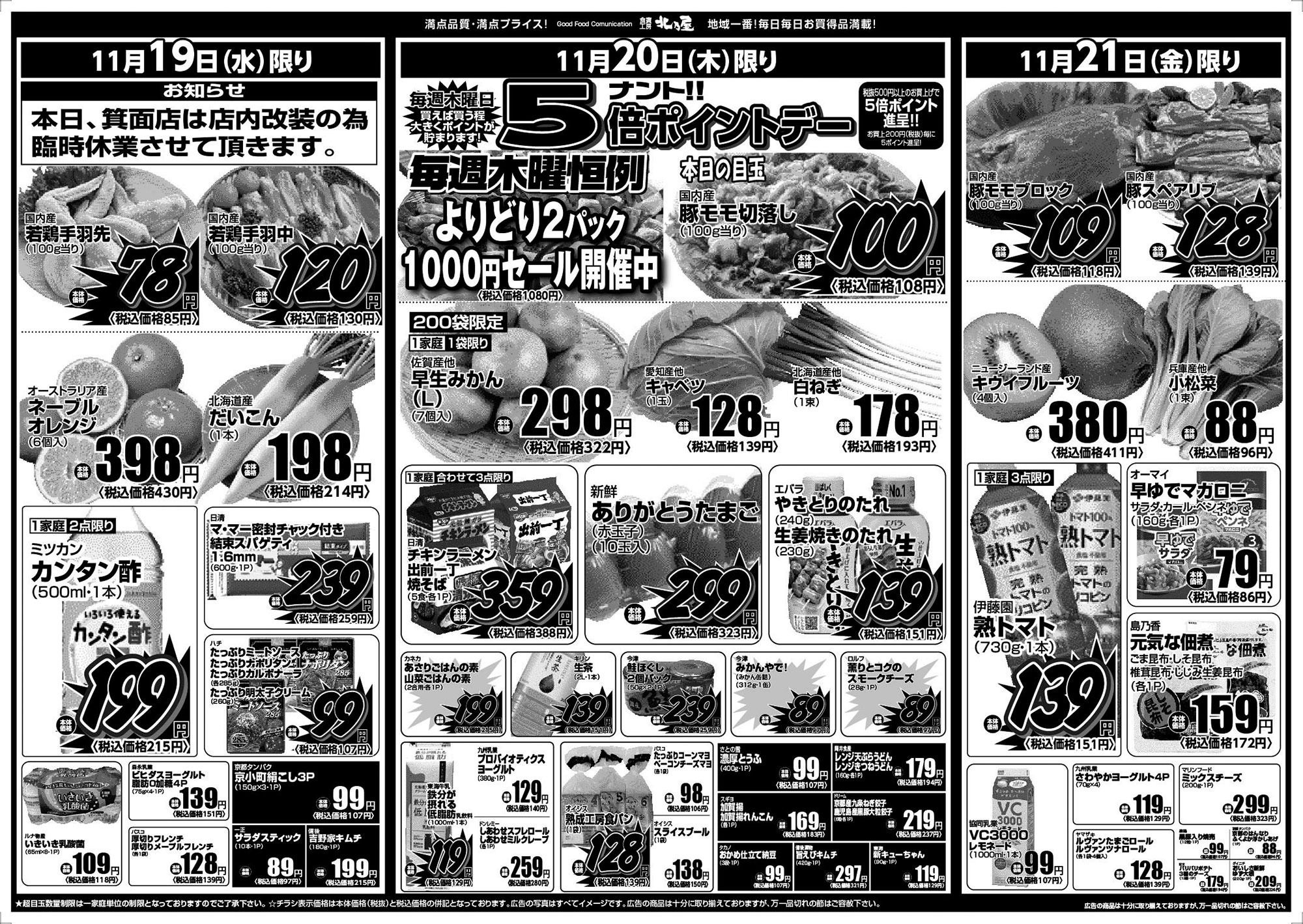 ★超目玉数量制限は一家庭単位の数量制限となっておりますのでご了承下さい。 ★チラシ表示価格は本体価格(税抜)と税込価格の併記となっております。 ★広告の写真はすべてイメージ図です。 ★広告の商品は十分に取り揃えておりますが、万一品切れの節はご容赦下さい。