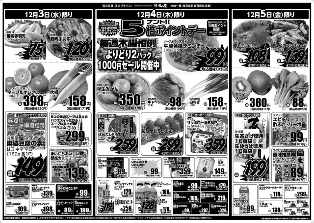 ★超目玉数量制限は一家庭単位の数量制限となっておりますのでご了承下さい。 ★チラシ表示価格は本体価格(税抜)と税込価格の併記となっております。 ★広告の写真はすべてイメージ図です。 ★広告の商品は十分に取り揃えておりますが、万一品切れの節はご容赦下さい。