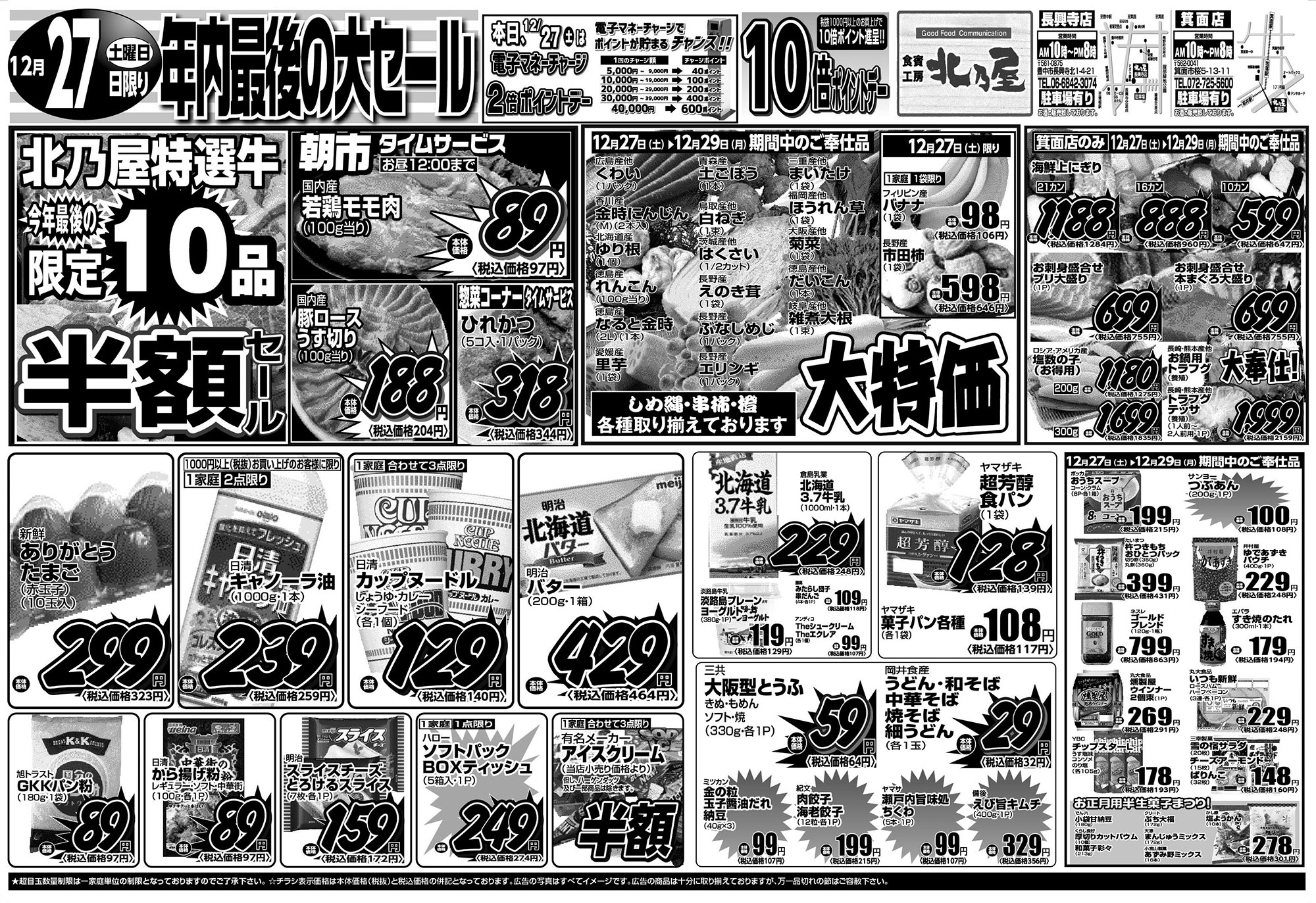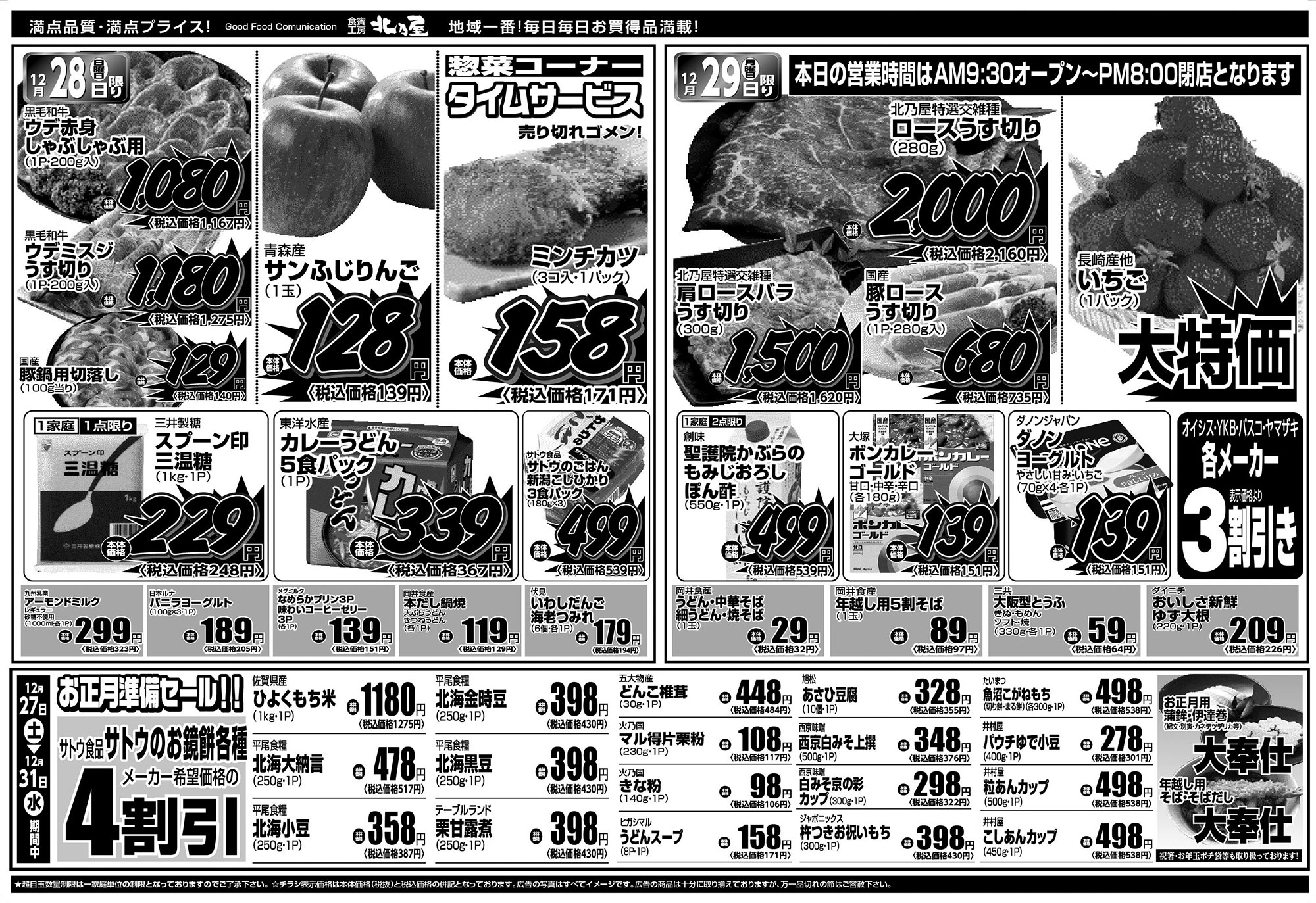 ★超目玉数量制限は一家庭単位の数量制限となっておりますのでご了承下さい。 ★チラシ表示価格は本体価格(税抜)と税込価格の併記となっております。 ★広告の写真はすべてイメージ図です。 ★広告の商品は十分に取り揃えておりますが、万一品切れの節はご容赦下さい。