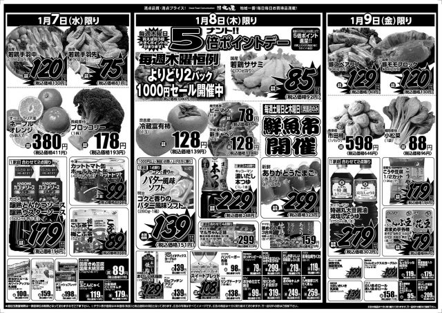 ★超目玉数量制限は一家庭単位の数量制限となっておりますのでご了承下さい。 ★チラシ表示価格は本体価格(税抜)と税込価格の併記となっております。 ★広告の写真はすべてイメージ図です。 ★広告の商品は十分に取り揃えておりますが、万一品切れの節はご容赦下さい。
