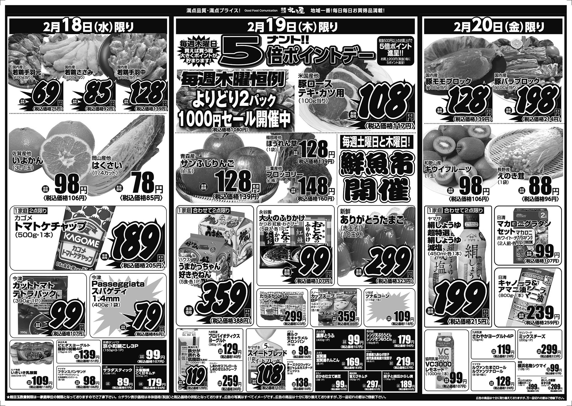 ★超目玉数量制限は一家庭単位の数量制限となっておりますのでご了承下さい。 ★チラシ表示価格は本体価格(税抜)と税込価格の併記となっております。 ★広告の写真はすべてイメージ図です。 ★広告の商品は十分に取り揃えておりますが、万一品切れの節はご容赦下さい。
