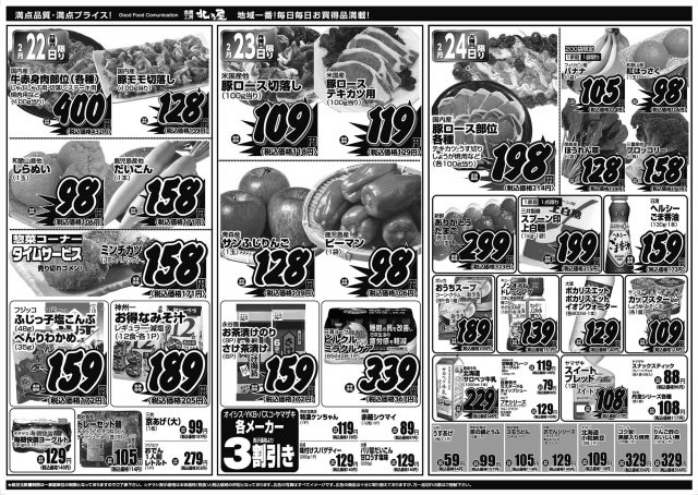 ★超目玉数量制限は一家庭単位の数量制限となっておりますのでご了承下さい。 ★チラシ表示価格は本体価格(税抜)と税込価格の併記となっております。 ★広告の写真はすべてイメージ図です。 ★広告の商品は十分に取り揃えておりますが、万一品切れの節はご容赦下さい。