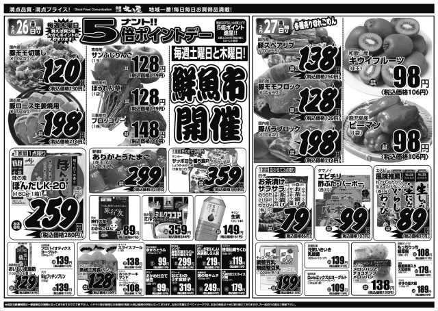 青果・鮮魚・精肉・食品・日用品のことなら、食賓工房 北乃屋へ!
