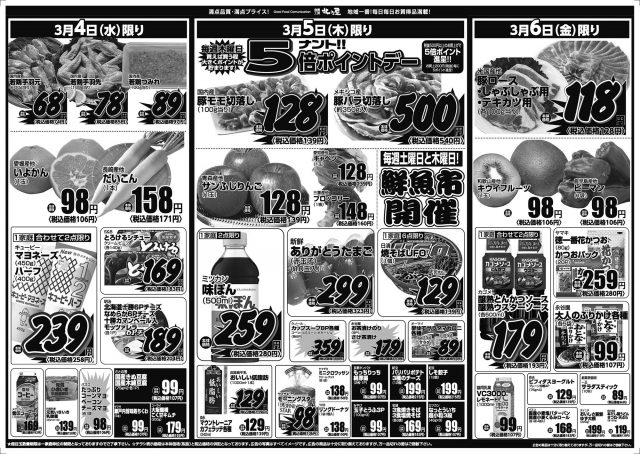 ★超目玉数量制限は一家庭単位の数量制限となっておりますのでご了承下さい。 ★チラシ表示価格は本体価格(税抜)と税込価格の併記となっております。 ★広告の写真はすべてイメージ図です。 ★広告の商品は十分に取り揃えておりますが、万一品切れの節はご容赦下さい。