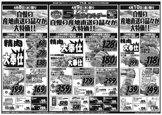 ★超目玉数量制限は一家庭単位の数量制限となっておりますのでご了承下さい。 ★チラシ表示価格は本体価格(税抜)と税込価格の併記となっております。 ★広告の写真はすべてイメージ図です。 ★広告の商品は十分に取り揃えておりますが、万一品切れの節はご容赦下さい。