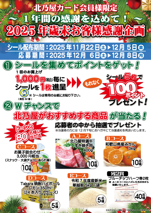 1年間の感謝を込めて「2025年歳末お客様感謝企画」のお知らせ